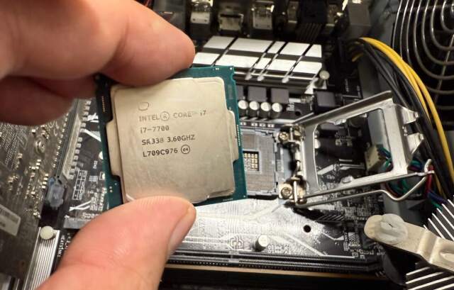 まずは、自分のPCを開けてみて、CPUが取り出せるかを確認します。また、この時に注意したいのが、マザーボードです。CPUを乗せ換えても、そのCPUにマザーボードが対応していないといけません。マザーボードの型番は、パソコンを開けると、マザーボード上のどこかに書かれています。その型番で対応CPUが搭載できるかを確認します。