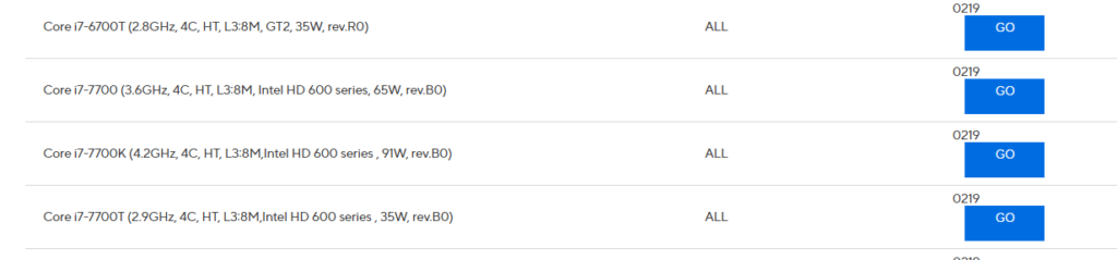 次に、CPUを乗せ換えるために、Microsoftの公式サイトで対応しているCPUを調べます。以下のページで検索可能です。