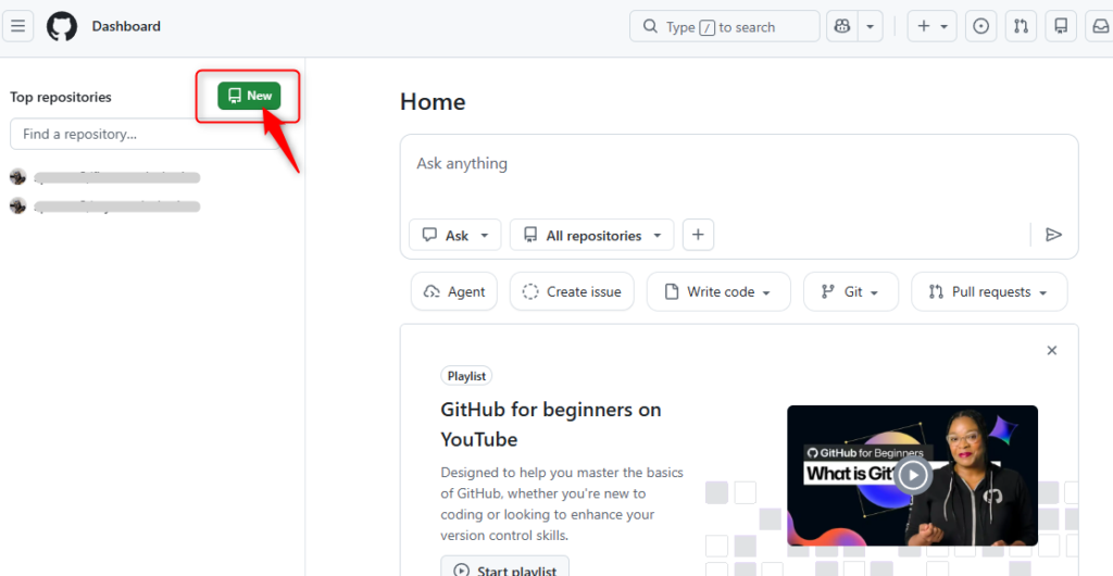 - ログイン後の画面左上にある緑色の「New」ボタンをクリックします。