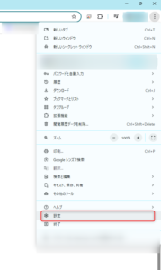 - 表示されたメニューの中から「設定」を選んでクリックしてください。