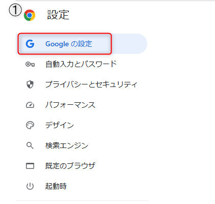 - 設定画面が開いたら、左上の「Googleの設定」をクリックします。