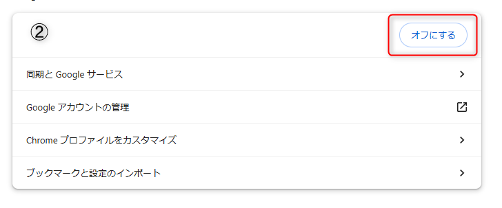 - 同期を解除するためには、この「オフにする」をクリックします。