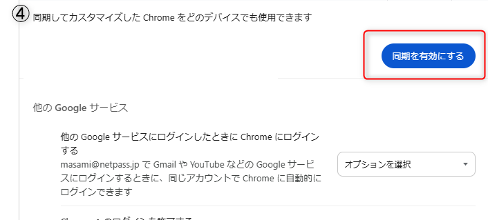 同期とは、同じGoogleアカウントでログインしている複数のデバイス(PCやスマホ)間で、ブックマーク、閲覧履歴、パスワードなどの設定を自動的にお揃いの状態にしてくれる、とても便利な機能です。