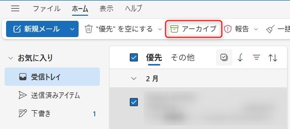 操作のコツ: 「アーカイブ」はメールを削除せず、「すべてのメール」フォルダーに移動する機能です。受信トレイを「未処理のものだけ」にすることで、集中力が維持できます。