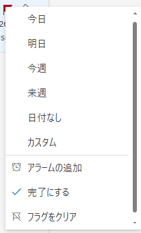 - ※期限を設定したい場合は、「旗のアイコン(フラグ)」を右クリックして「今日」「明日」「来週」などを選択可能です。