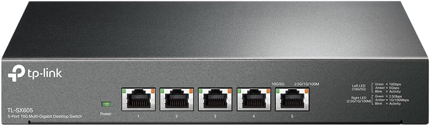 ※10Gbps対応のスイッチングHUBはまだ数万円の価格帯で、一般家庭ではほとんど使われていない。(写真はTP-LINK社の5ポートHUB。5ポートでは3~5万円程度の実勢価格)