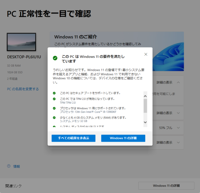 「PC 正常性チェック アプリ」の最も重要な役割の一つは、現在Windows 10を実行しているデバイスが、Windows 11の最小システム要件を満たしているかどうかを包括的に確認することです