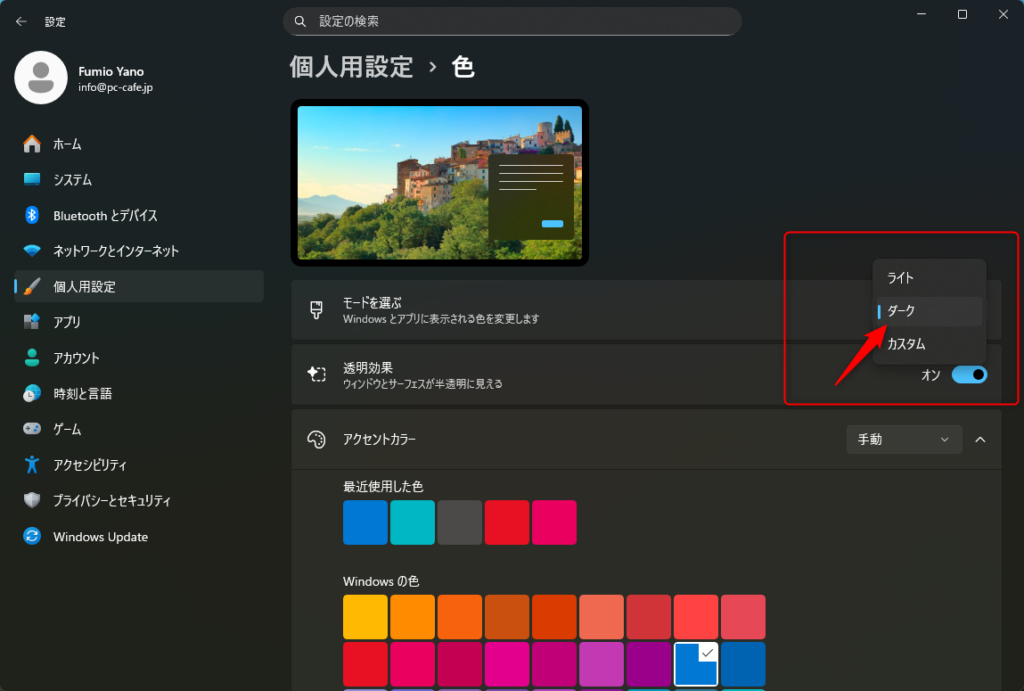 ホーム PICK UP Windows11のエクスプローラーなどの画面が暗い(ダークモード)になってしまった